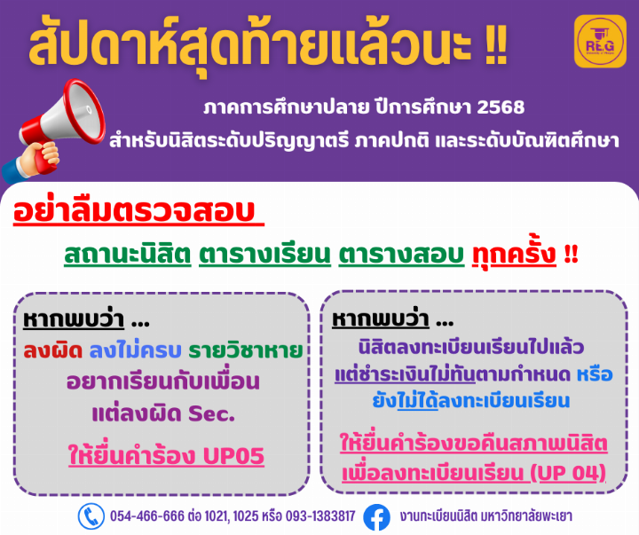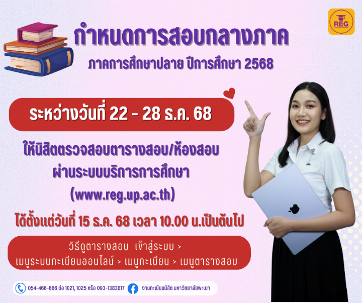 ผ่านระบบบริการการศึกษา มหาวิทยาลัยพะเยา www.reg.up.ac.th