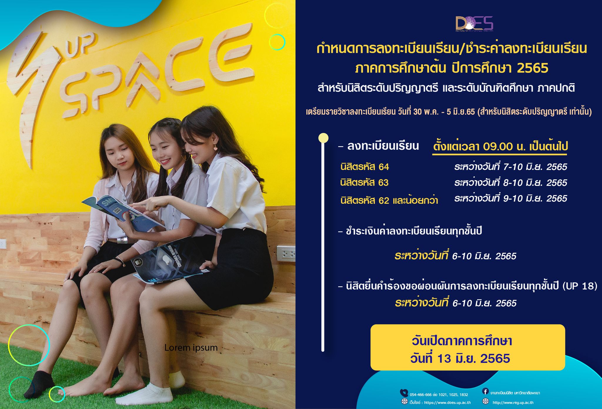 ⭐️ #นิสิตลงทะเบียนเรียนและชำระเงินแล้ว #แต่ยังเพิ่มรายวิชาไม่ครบ #ให้ยื่นคำร้องขอเพิ่มรายวิชาหลังกำหนด (UP 05) 🚩ตั้งแต่วันที่ 28 มิ.ย. 68 เวลา 08.30 น. เป็นต้นไป ⭐️ #กรณีนิสิตลงทะเบียนเรียนไปแล้ว #แต่ชำระเงินไม่ทันตามกำหนด หรือ #ยังไม่ได้ลงทะเบียนเรียน #ให้ยื่นคำร้องขอคืนสภาพนิสิตเพื่อลงทะเบียนเรียน (UP 04) 🚩ตั้งแต่วันที่ 30 มิ.ย. 68 เวลา 13.00 น. เป็นต้นไป