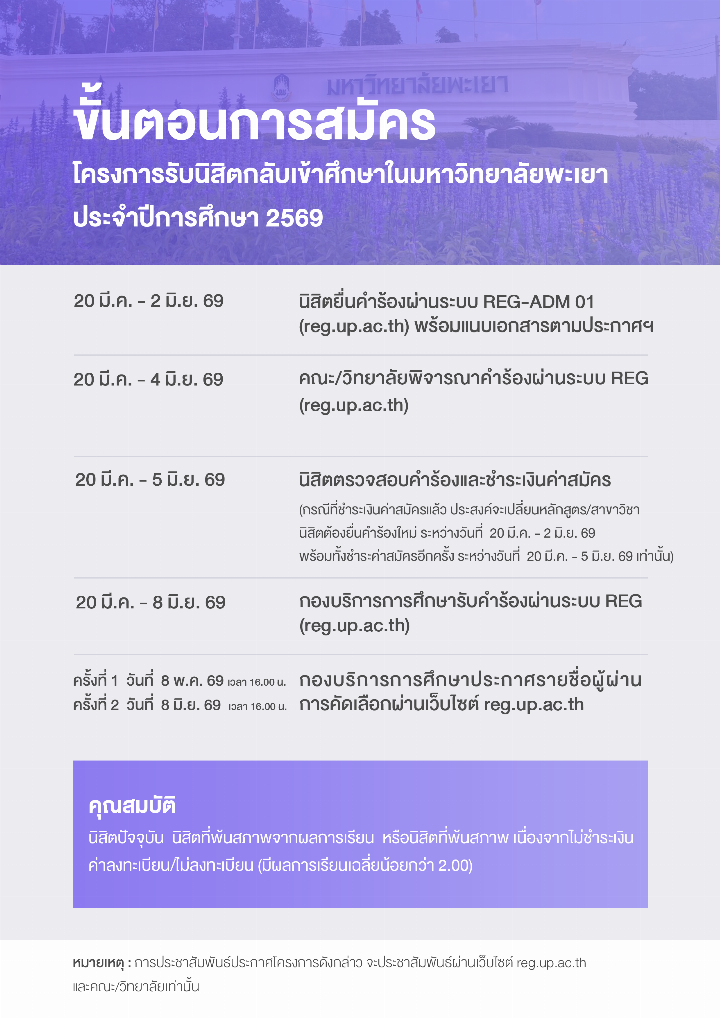 1. ให้นิสิตยื่นคำร้องในระบบ www.reg.up.ac.th