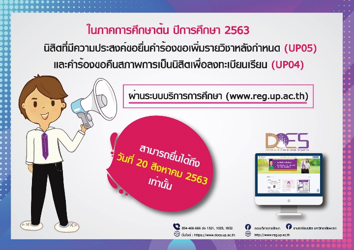 ผ่านระบบบริการการศึกษา (www.reg.up.ac.th)